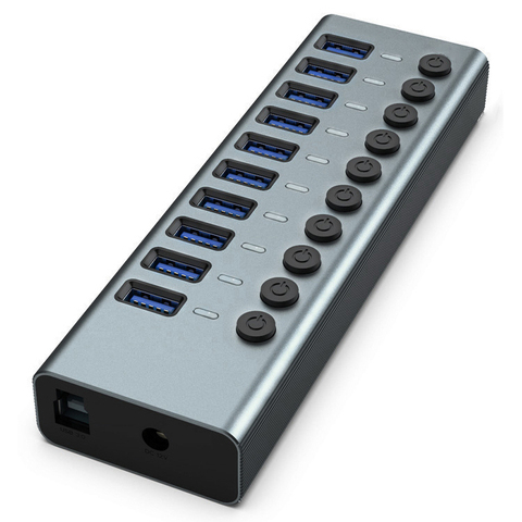 USB-концентратор 10 в 1 с несколькими портами USB 3,2 Gen2, зарядка данных 12 В, переключатель адаптера питания