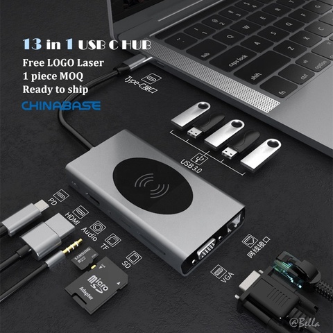 USB C Hub13 Trong 1 Loại C Adapter Docking Station Với Sạc Không Dây 100W Pd 4K HDMI VGA USB 3.0 Ethernet Sdtf Đối Với MacBook Pro